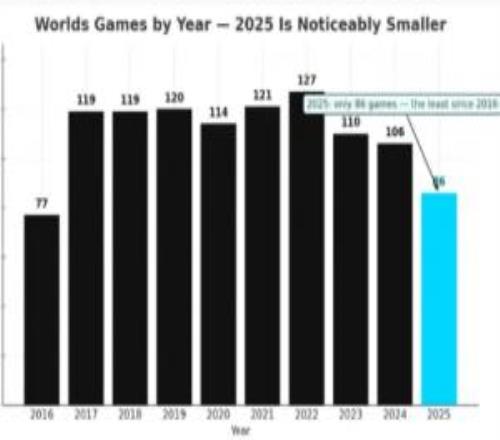 由于此前包含入围赛队伍总共有20只队伍,今年仅有17支,所以今年S赛比赛场数大幅度缩水仅有86场比赛,为S6以来比赛场数最少得一届。