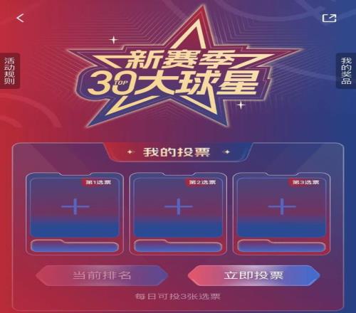 30强排名阶段每位用户可在活动页面中,按照第一选票(5分)、第二选票(3分)、第三选票(1分)来选择自己心目中新赛季最喜爱的球星前三顺位并生成投票结果