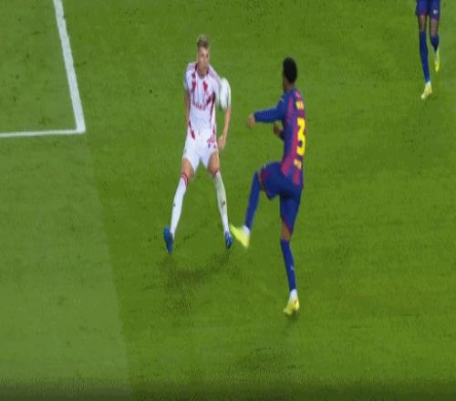 第57分钟,赫泽和卡萨多争抢时互相拉扯,卡萨多有些夸张的摔倒在地,主裁毫不犹豫的给赫泽颁发了第2张黄牌,赫泽两黄变1红被罚下场。取得人数优势后,巴萨攻势更是猛烈,第67分钟,拉什福德后排插上甩开防守,小禁区内半单刀将球一捅躲开奋力扑过来的门将佐拉基斯,后者将拉什福德扑倒,主裁吹罚了点球。亚马尔操刀主罚稳稳命中,巴萨3:1再次取得2球领先优势。
