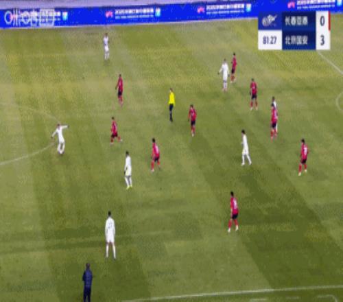 第83分钟,贺一然头球解围,但是方向出现错误,直接将球顶到自家门前,法比奥跟进轻松破门。国安队将比分锁定在4-0!