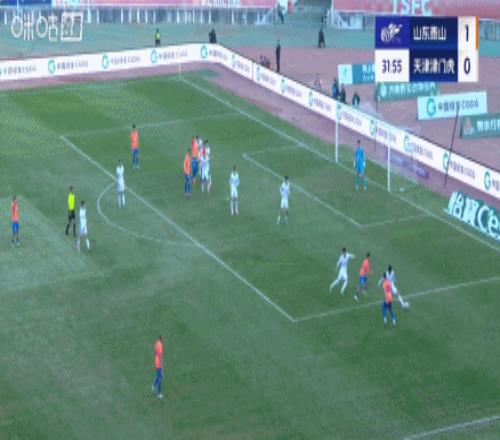 比赛第16分钟,卡扎伊什维利右路拿球内切到弧顶,随后一脚低射破门。泰山队1-0梦幻开局。