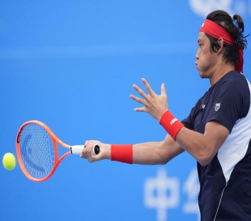 11月17日,张之臻在比赛中回球。