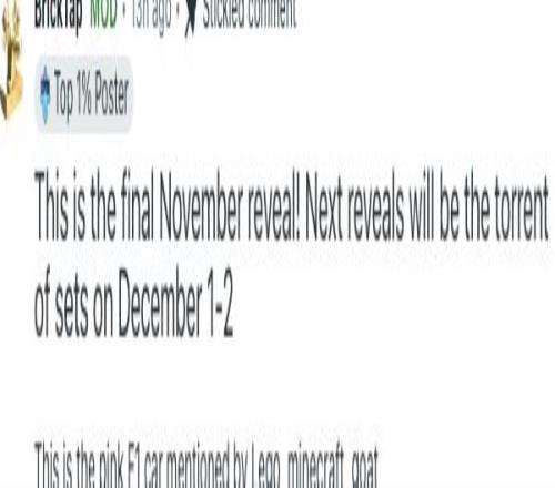 根据BrickTap最新的预告,这款新品是本月最后一次新品发布了。但是在12月1号开始,就会有乐高海量新品公布!
