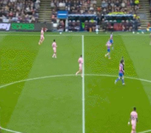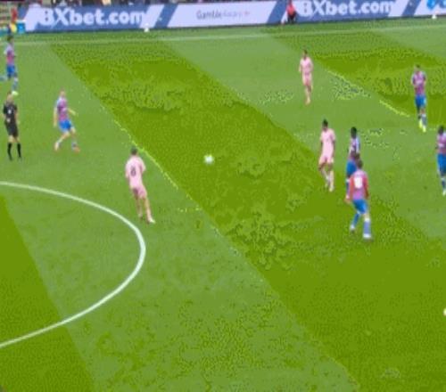 就像是上面动图中的这种球,水晶宫中场拿到球权后,沃顿会很着急打反击,但他越是想加速,失误就越多。