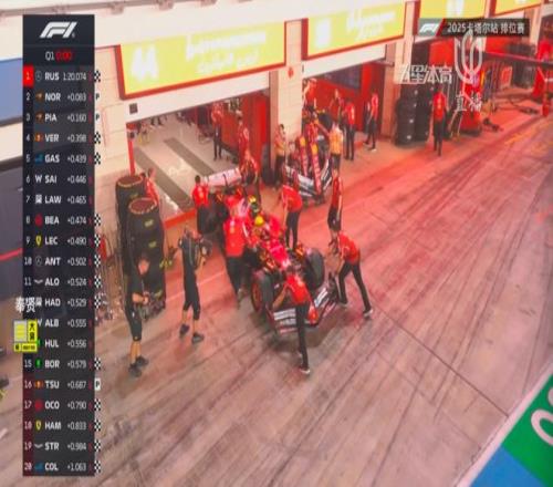 Q1起跑后威廉姆斯率先开始做成绩,皮亚斯特里第一个飞行圈就刷紫到1:20.739,这还是用的旧红胎。两台法拉利略显挣扎,第一个飞行圈汉密尔顿和勒克莱尔分别落后皮亚斯特里1秒开外,好在第二个飞行圈,两人都进入前十。