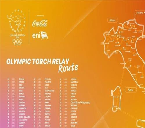 米兰冬奥会火炬传递路线公布,将穿越意大利20个大区110个省份