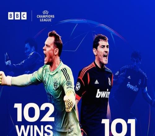 101胜追平卡西,诺伊尔成为欧冠胜场并列最多的门将