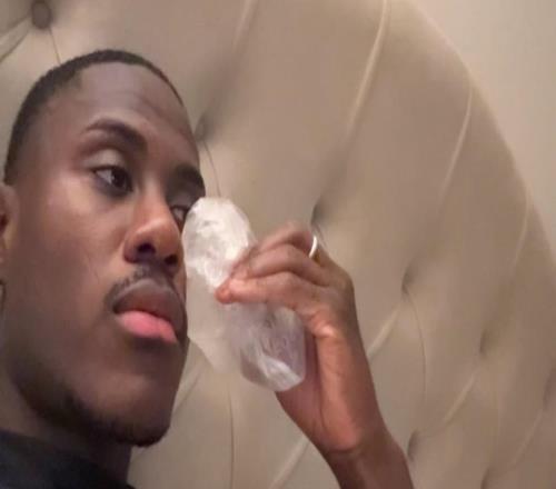 被因卡皮耶的肘部撞到,查洛巴赛后晒出冰敷的照片